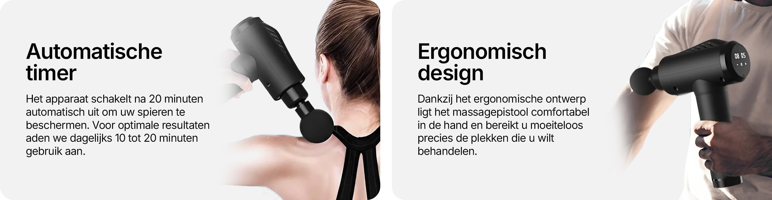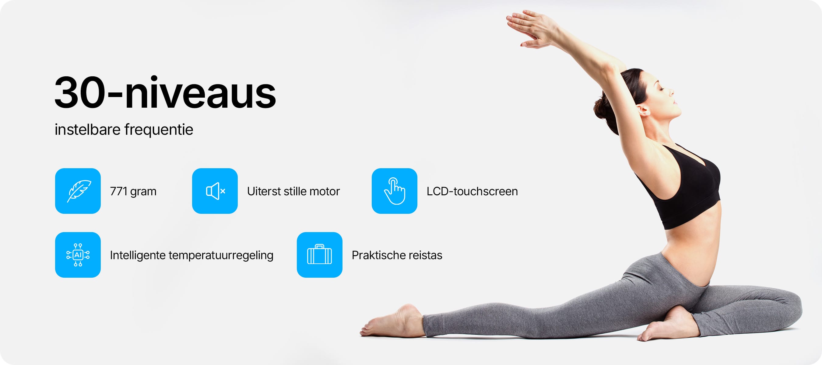 Massagepistool met 30 snelheden / Diepe spiermassage tot 3.600 impulsen/min / 10 massagekoppen voor nek, rug & lichaam / Met LCD-touchscreen