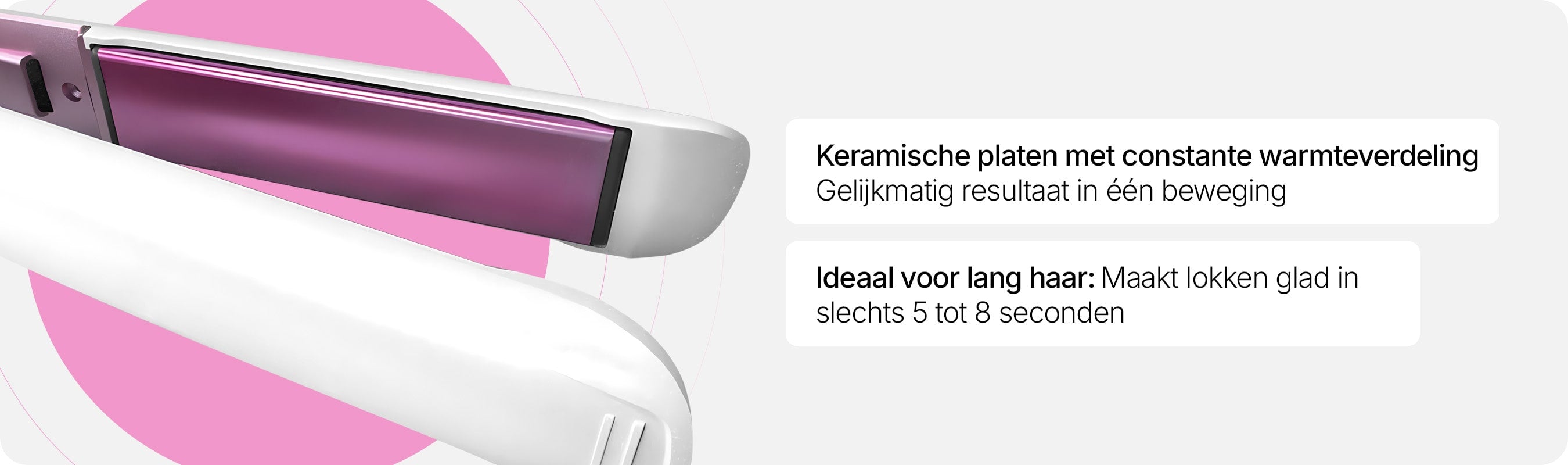 ✓ Steilen en krullen met één apparaat: Door het afgeronde ontwerp is de stijltang perfect voor zowel steil haar als krullen. De snelle opwarmtijd zorgt voor efficiënt stylen in slechts enkele minuten.